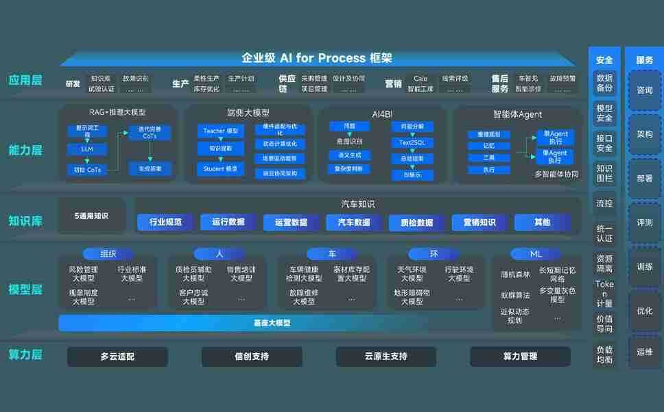 壹号平台问学智车解决方案是一套基于AI技术的汽车行业智能化系统,,覆盖从底层算力到顶层AI应用的全栈方案。。方案由算力层、、、模型层和应用层组成:算力层,,,方案支持多种一体机配置,,,,具备云端灵活部署、、、、多云适配以及动态优化计算资源的能力;模型层,,,,壹号平台问学平台版提供了企业级AI应用一站式构建与管理平台,,,支持基于后训练强化技术的汽车企业专属模型的训练、、、评测和运营;应用层,,壹号平台问学DeepSeek版提供包括超级员工、、、智能招采、、、、智能营销、、、、智能客服、、、、AI for BI等一系列解决方案,,可助力汽车行业实现数字化转型,,让管理更智能、、、、响应更敏捷。。